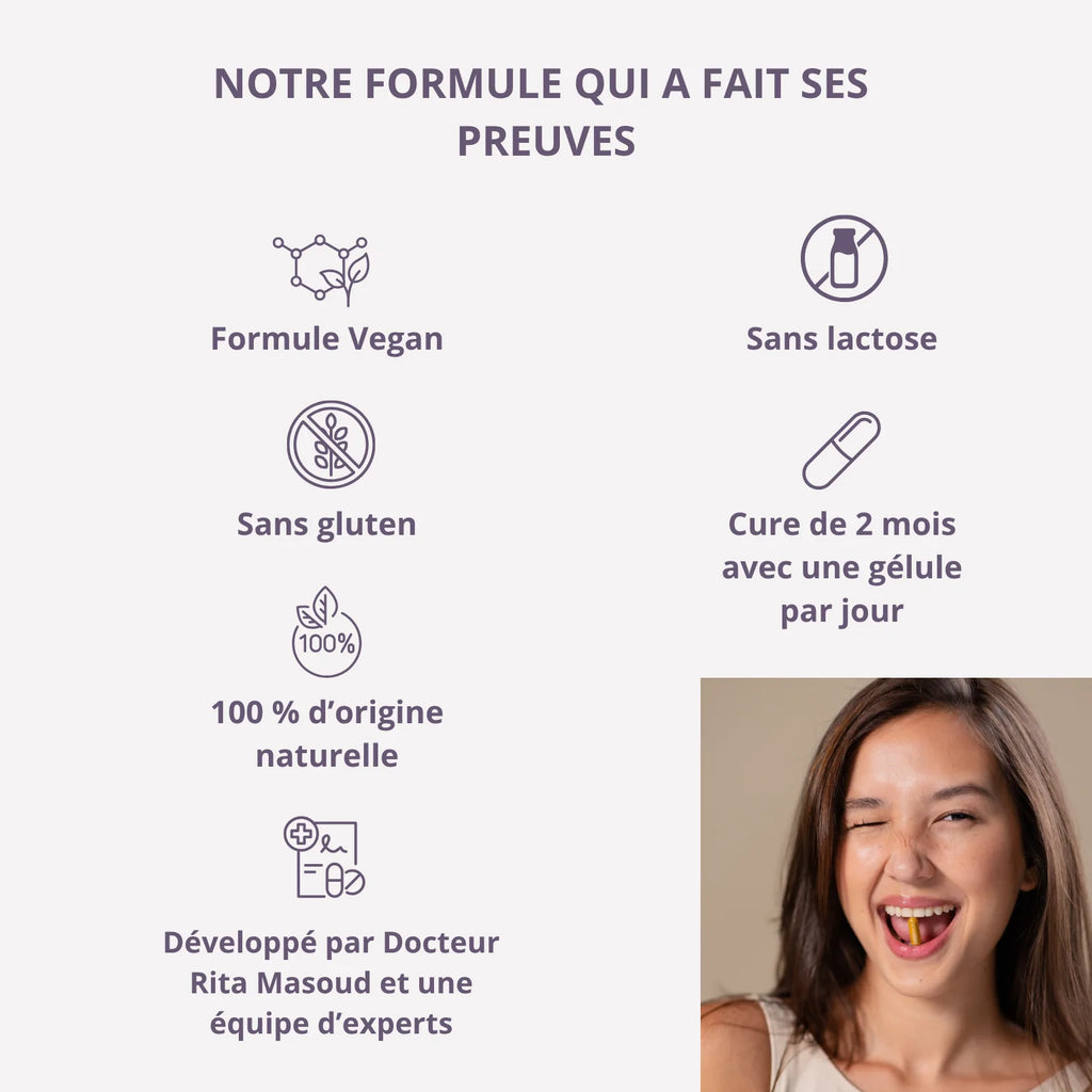 Contenance : Pilulier de 60 capsules pour 2 mois de cure.